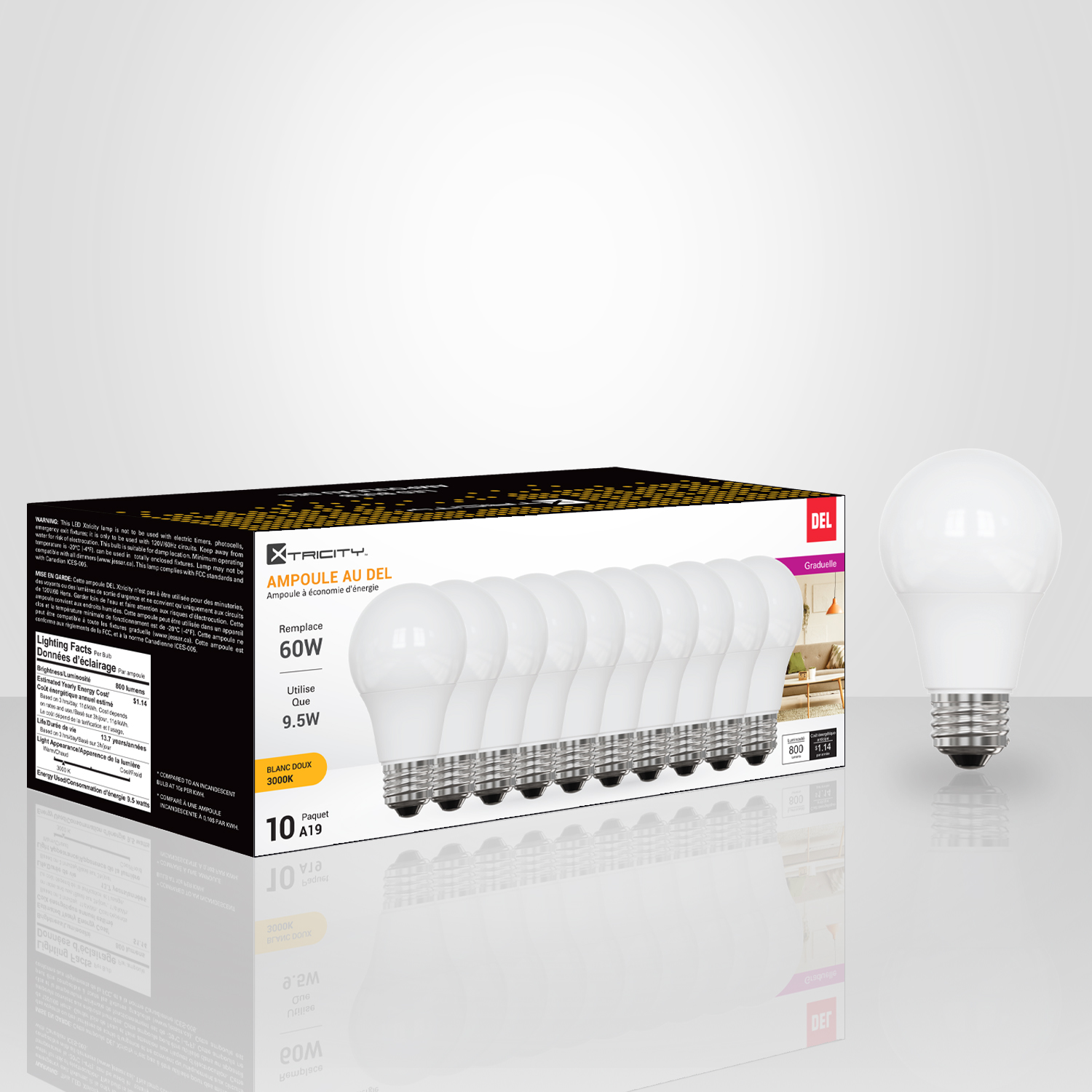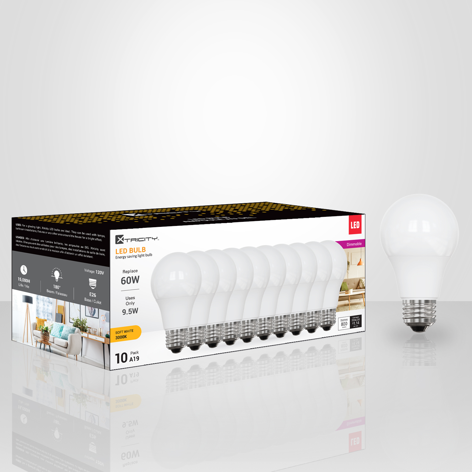 LED TYPE A / 9.5W / 120V / 3000K SOFT WHITE DIM. 10PK
